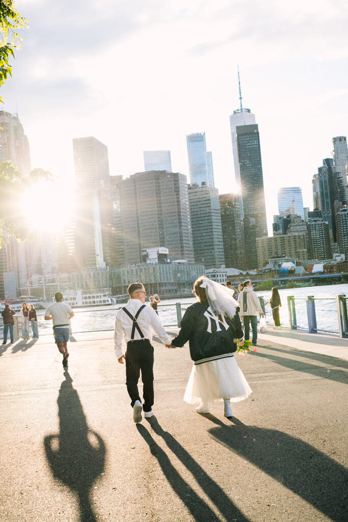 We make the city part of the celebration. NYC is the best place in the world for food and drinks — from donuts to fancy cocktails, dollar slices to vintage cakes. Your elopement day will be full of adrenaline (and a little tiring), so we don’t forget to carve out time to eat! Especially if you’re someone who gets hangry, consider those snack breaks part of the adventure.